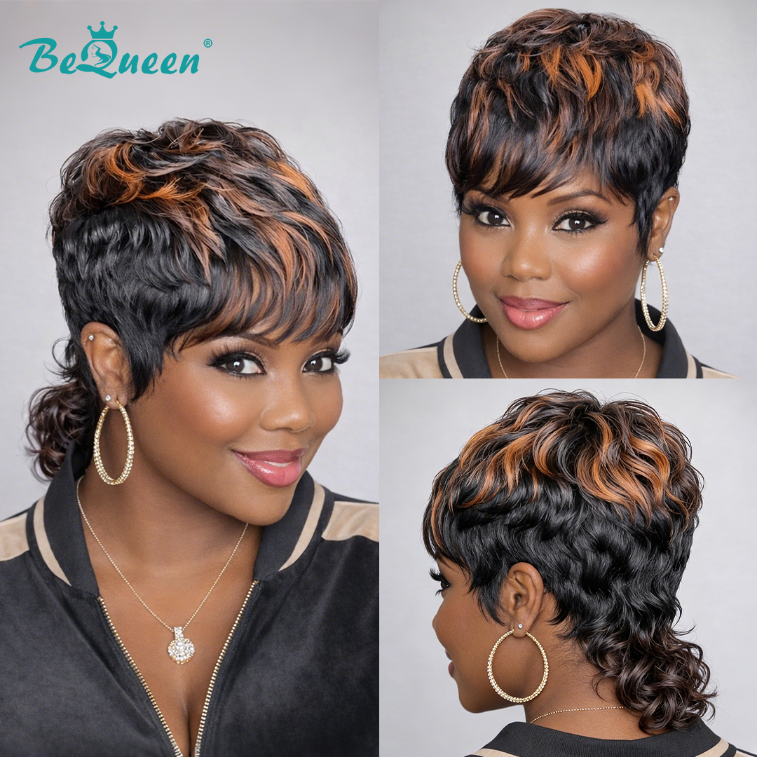 Bequeen Two-Color Blend Pixie Machine Made Wig