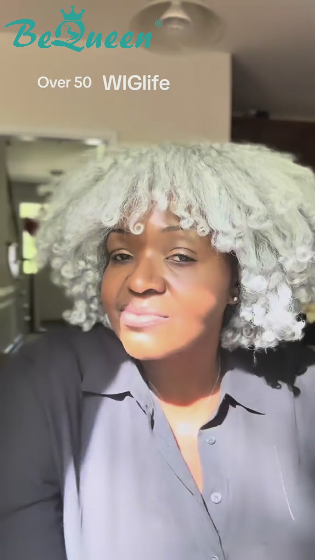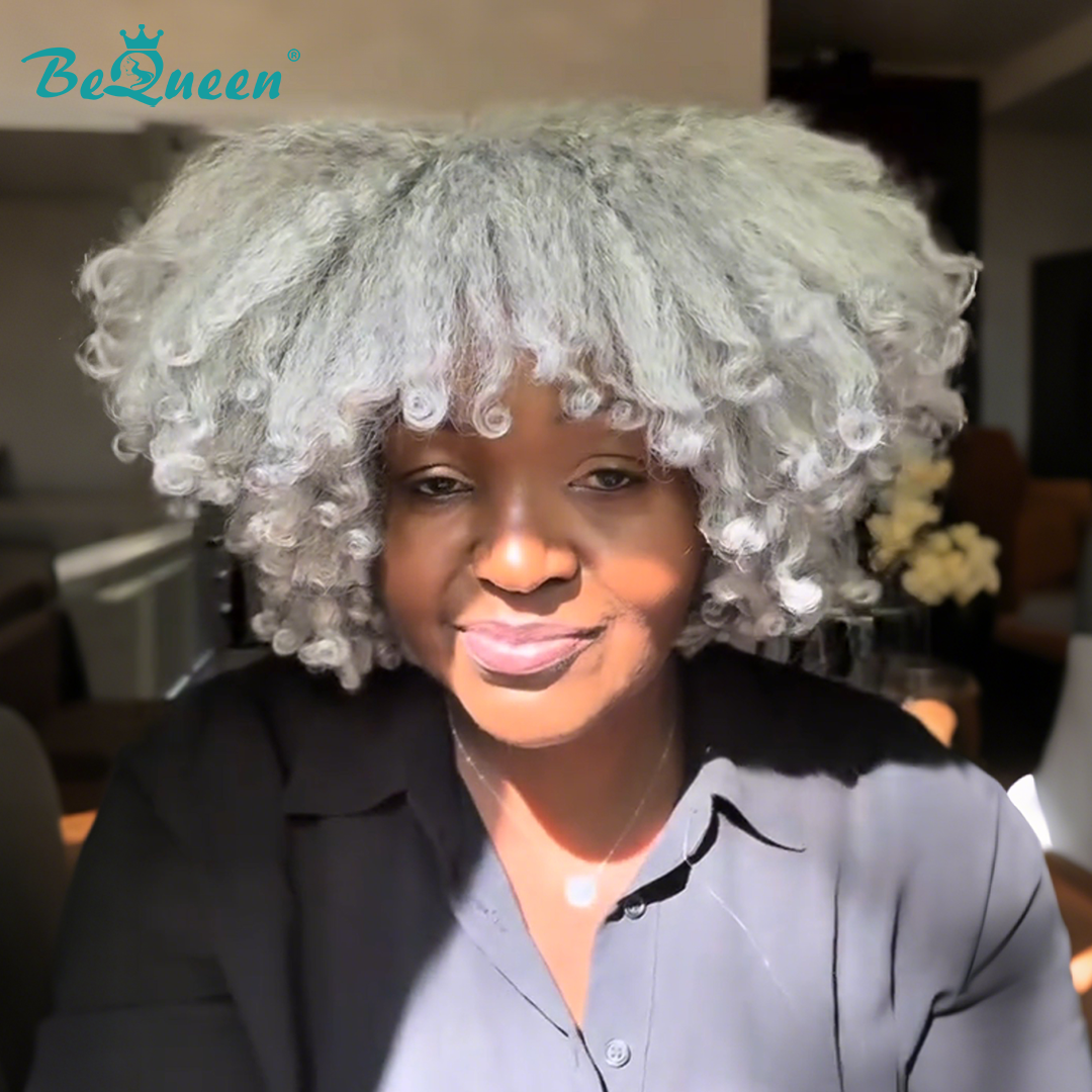 Bequeen Silver White Afro Fleecy Short Bob Wig