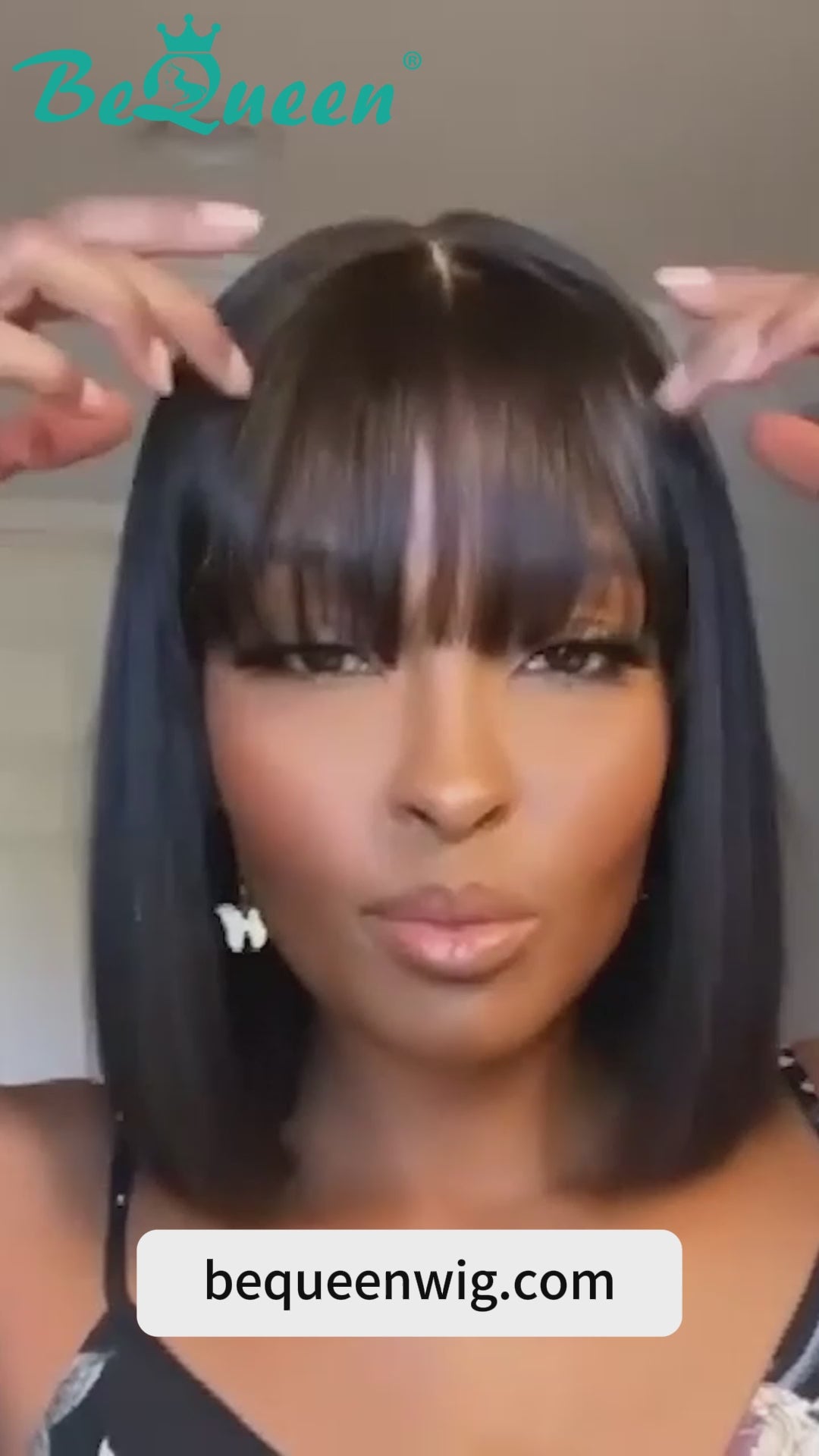 BEQUEEN 1B Straight Machine Made Wig With Bangs