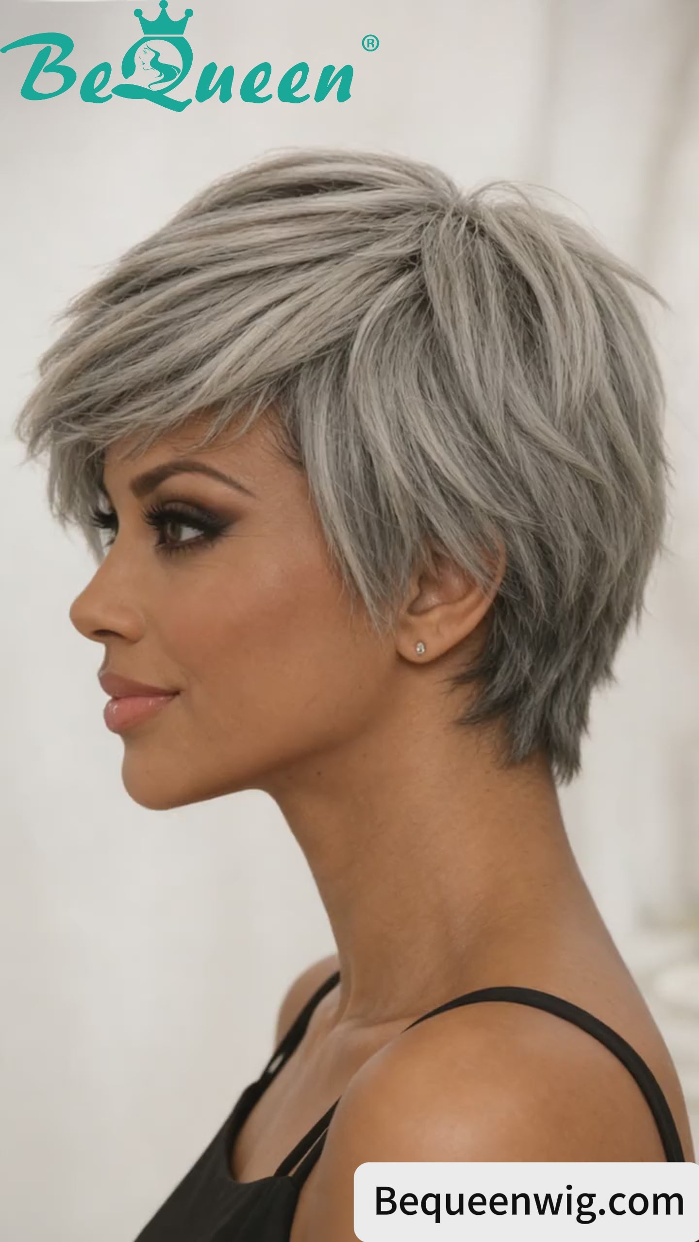 Bequeen Salt & Pepper Straight Style Short Cut Pixie Wig