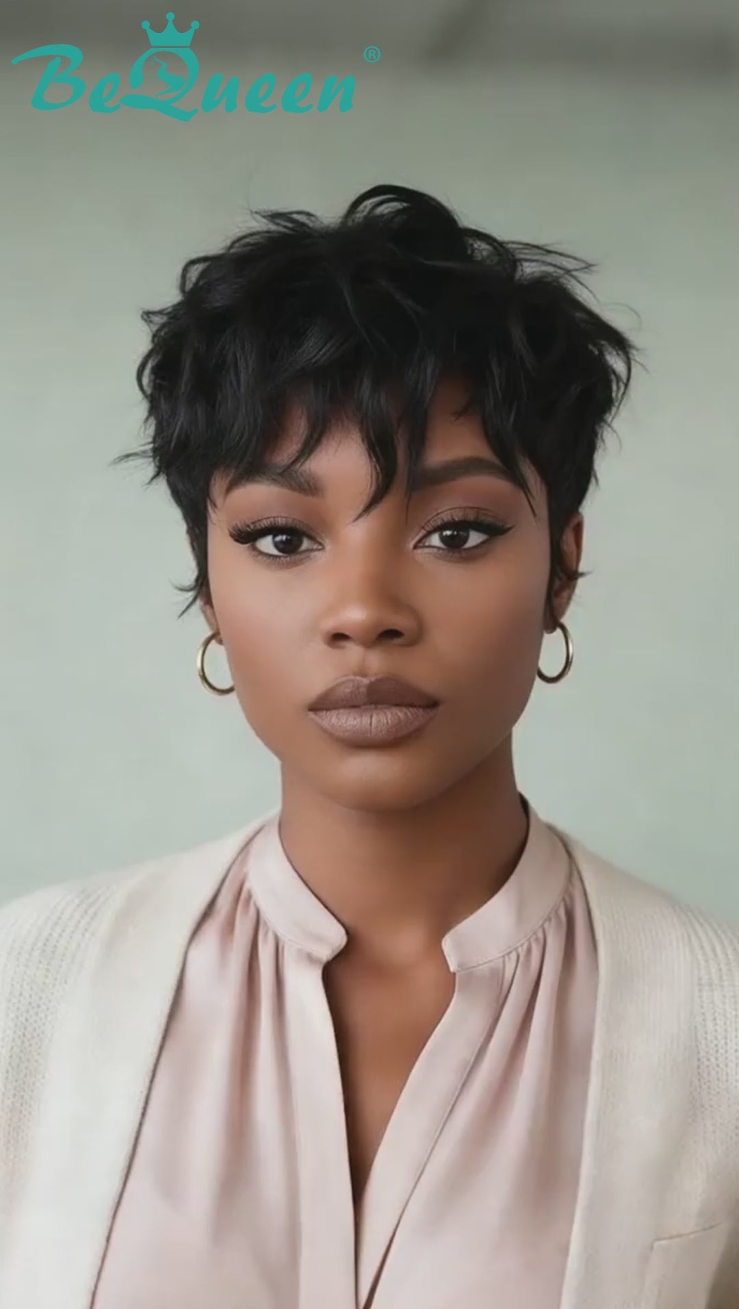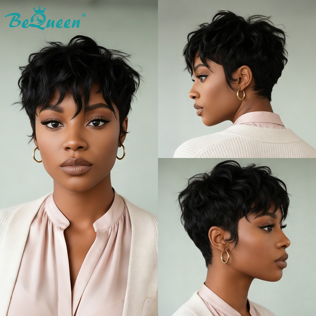 Bequeen 1B Natural Wave Short Cut Pixie Wig