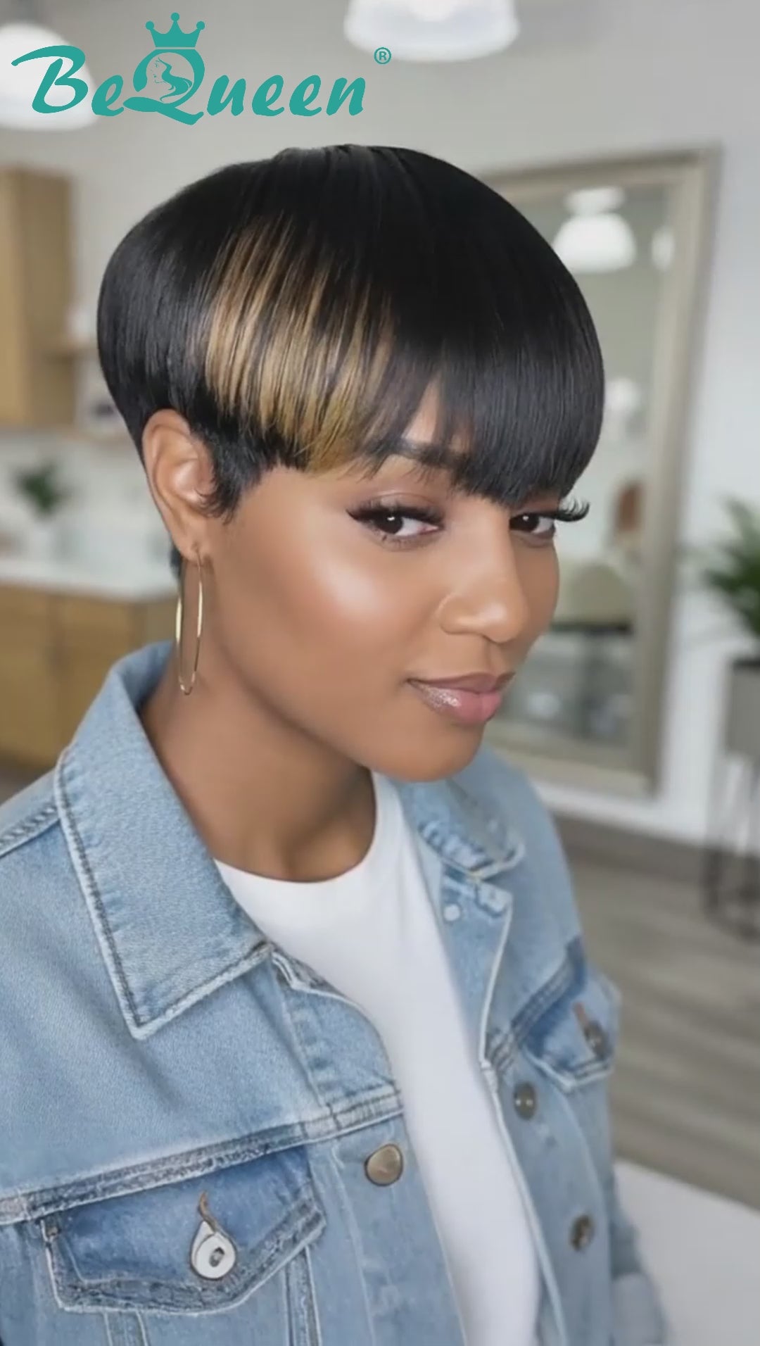 Bequeen Highlight Brown Machine Made Pixie Wig