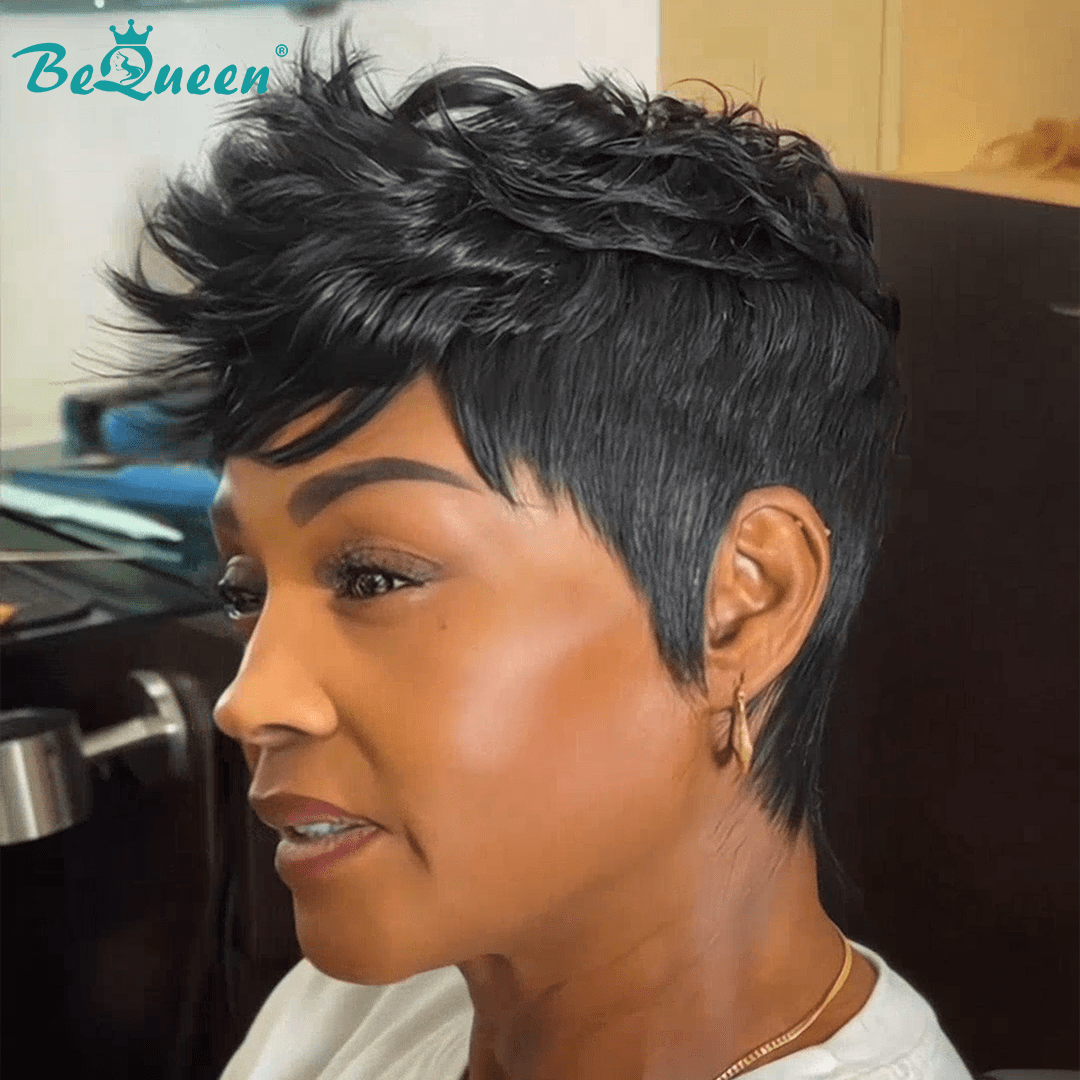 Bequeen Machine Made 1B Fashion Short Cut Wig