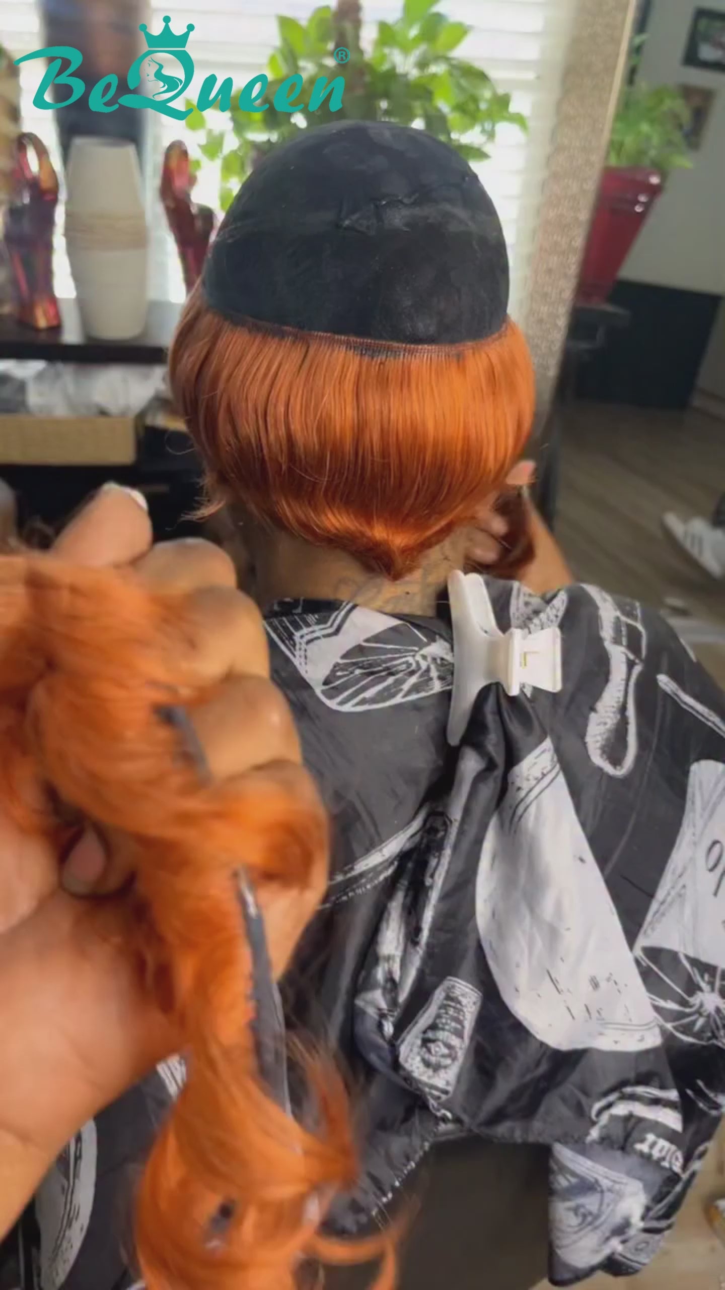 Bequeen Orange Highlight Blonde Short Cut Pixie Wig
