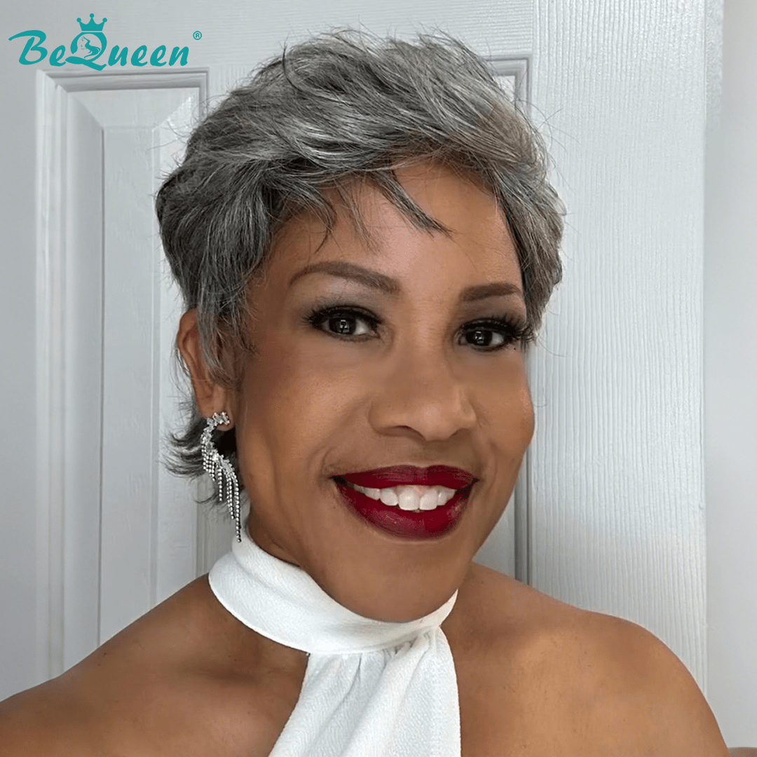 Bequeen Salt and Pepper Pixie Cut Human Hair Wig
