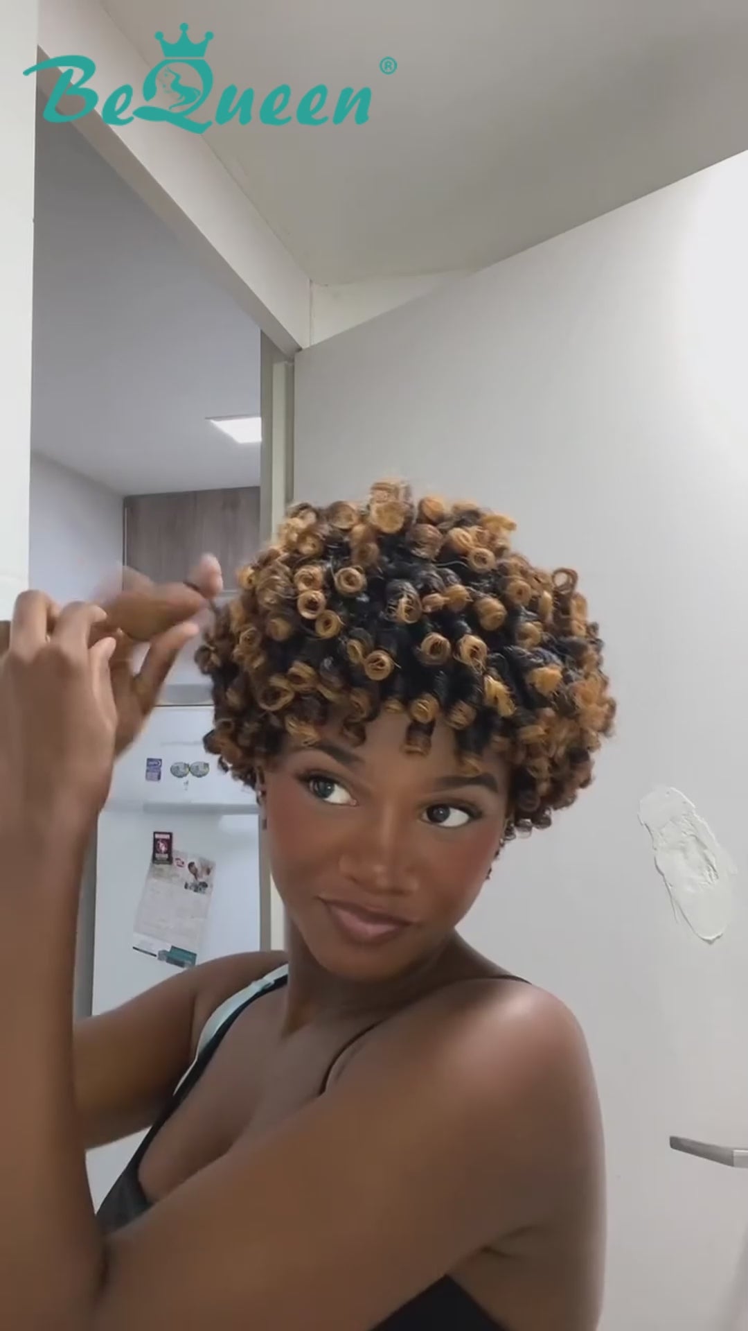 Bequeen Warm Brunette to Golden Brown Curly Hairpiece