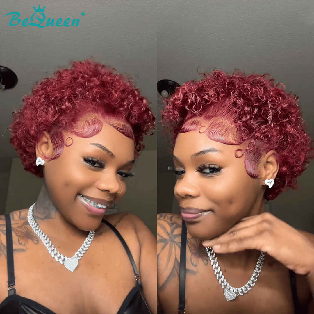 Bequeen Red Short Curly Frontal Lace Pixie Wig