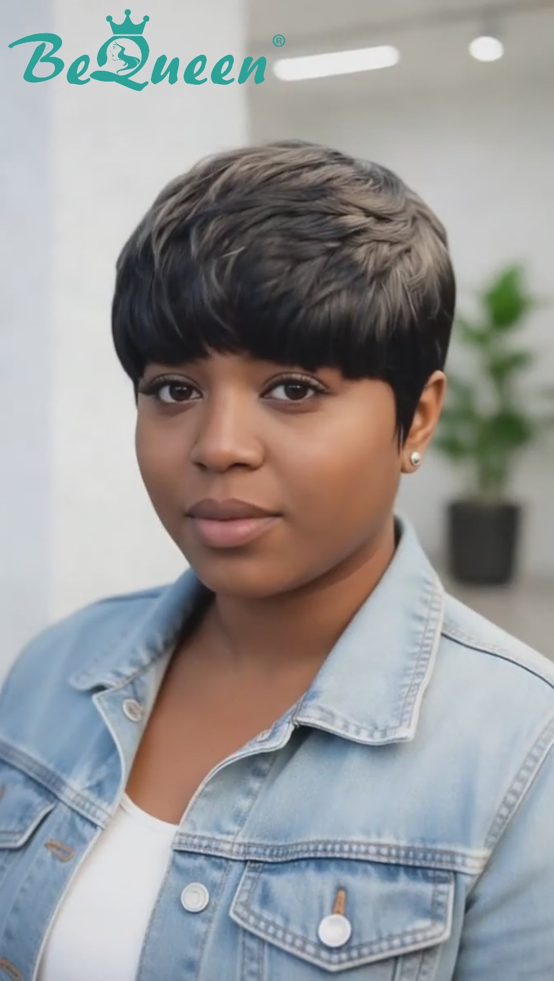 Bequeen 1B Straight Special Style Pixie Cut Wig-1