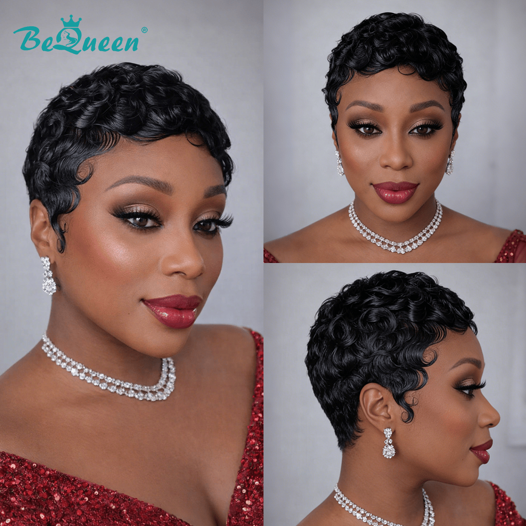 Bequeen Black Color Finger Wave Pixie Wig
