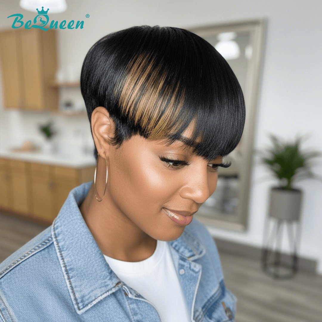 Bequeen Highlight Brown Machine Made Pixie Wig