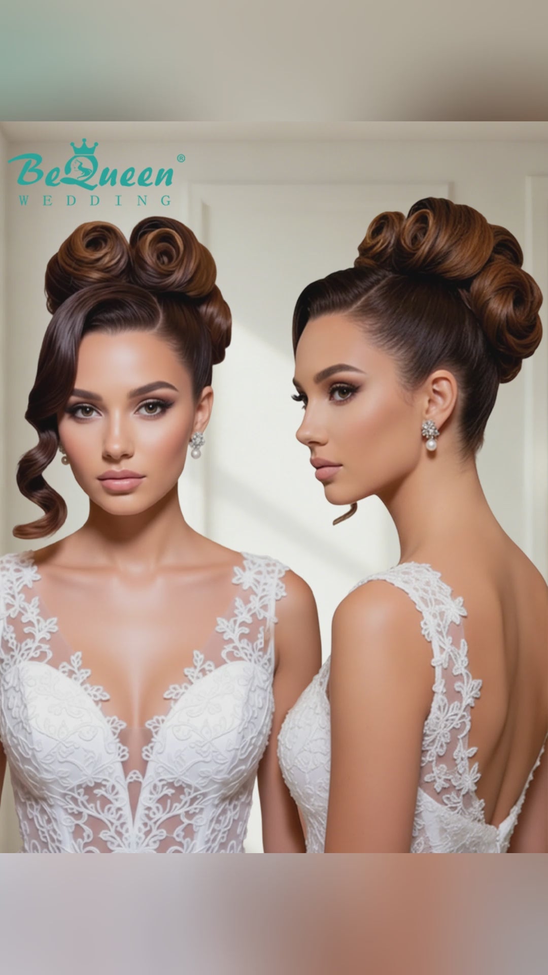 Bequeen Voluminous Jet Black Mixed Brown Retro Updo Wedding Wig