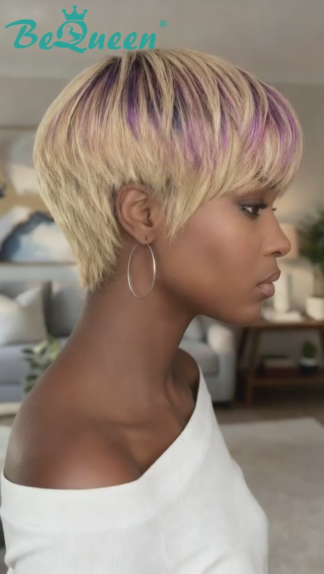 Bequeen 613 Mixed Purple Straight Pixie Short Cut Wig