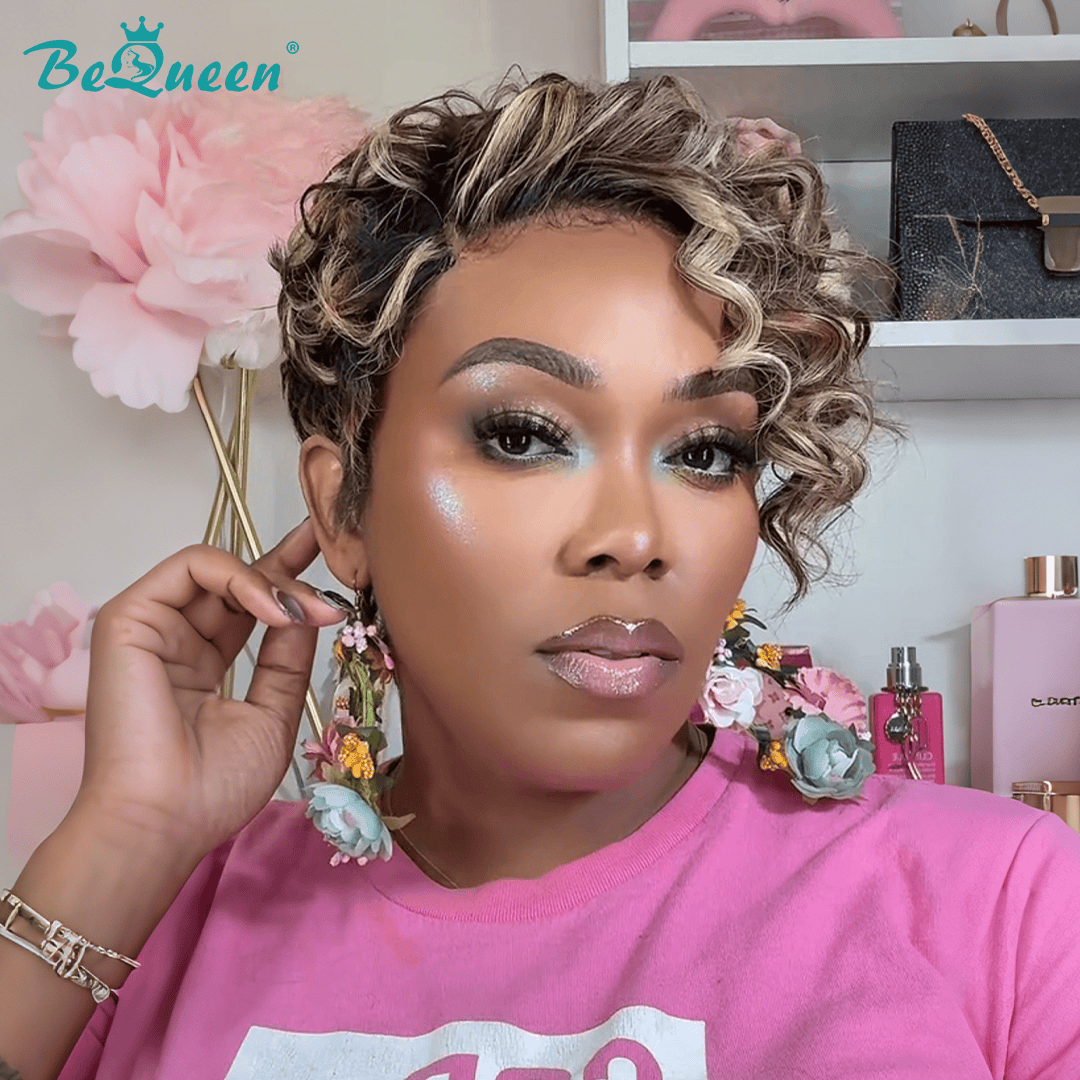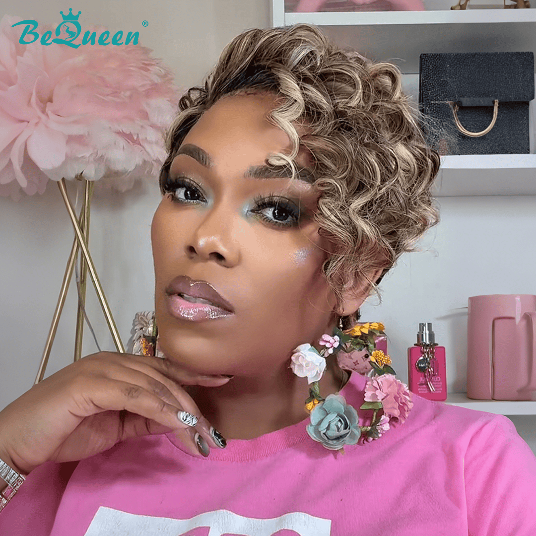 Bequeen Mixed Icy Beige Blonde Layer Pixie Lace Wig