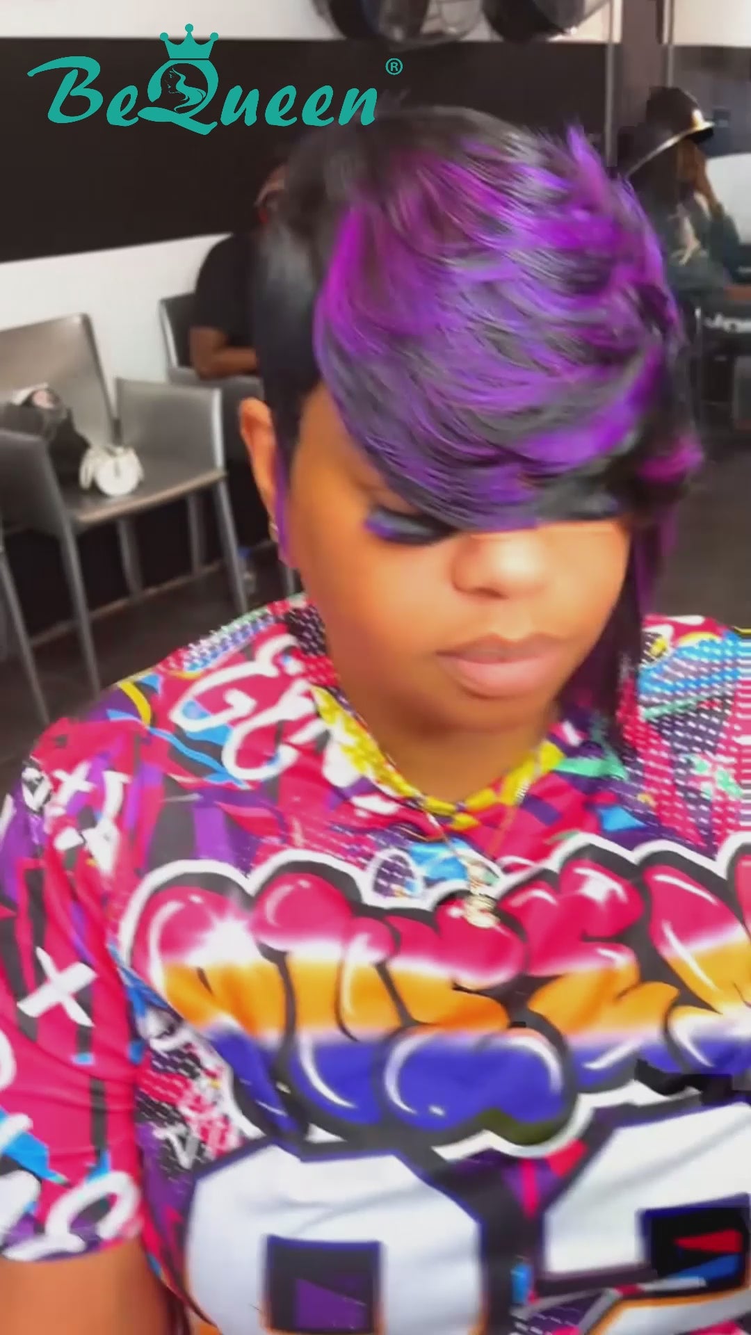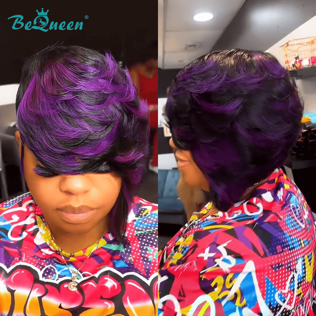 Bequeen Natural Black & Purple Pixie Side Part Long Wig