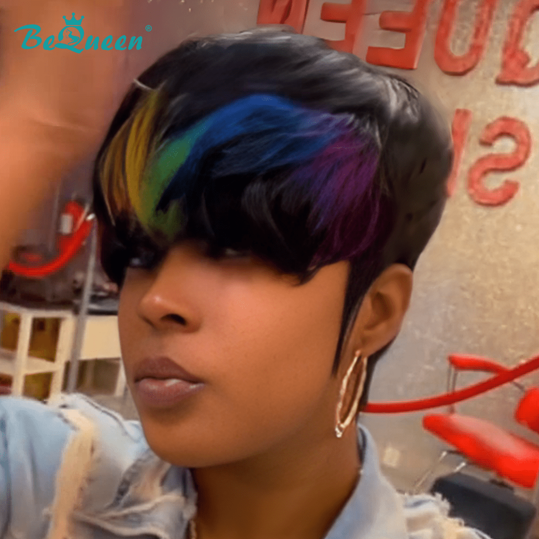 Bequeen Rainbow Ombre Short Pixie Wig
