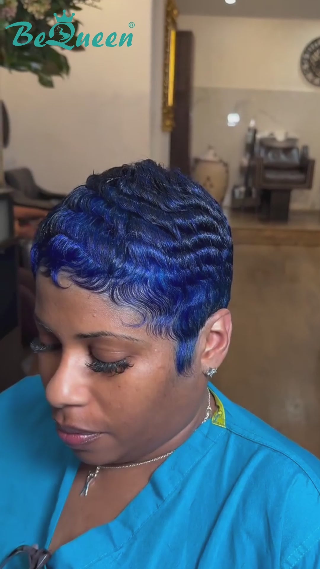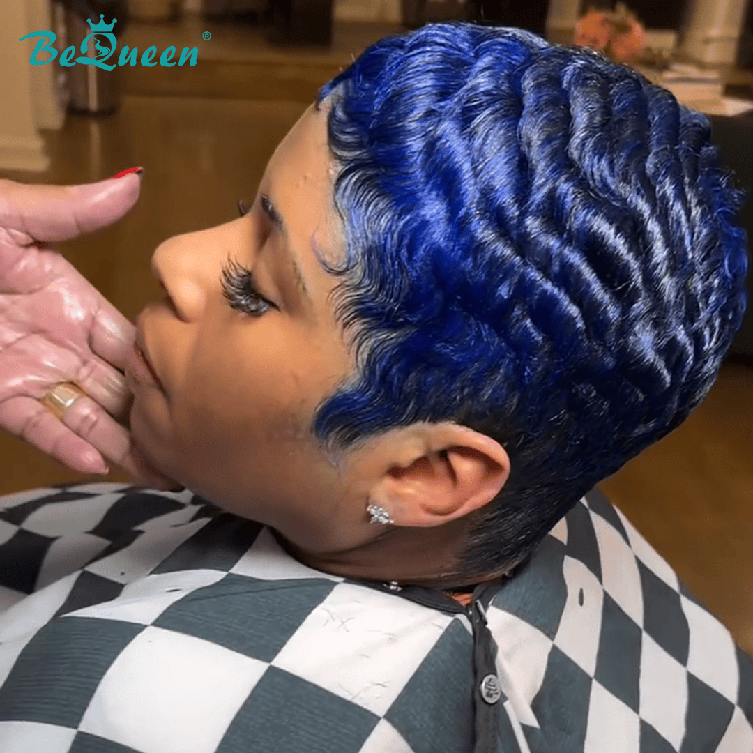 Bequeen Blue Curly Special Style Pixie Cut Wig