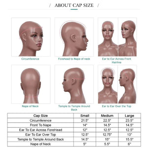 A: All of stock is standard medium, it is 22.5 inches. And it has adjustable straps. Normally it can match the head of most people. If you have a very large / small head (only for 360 wig, full lace wig can't be customized), you can leave a note in your order for that, but it needs $10 fee for the additional service (we will send you an invoice for the $10), and it needs 2 more days to be shipped out.